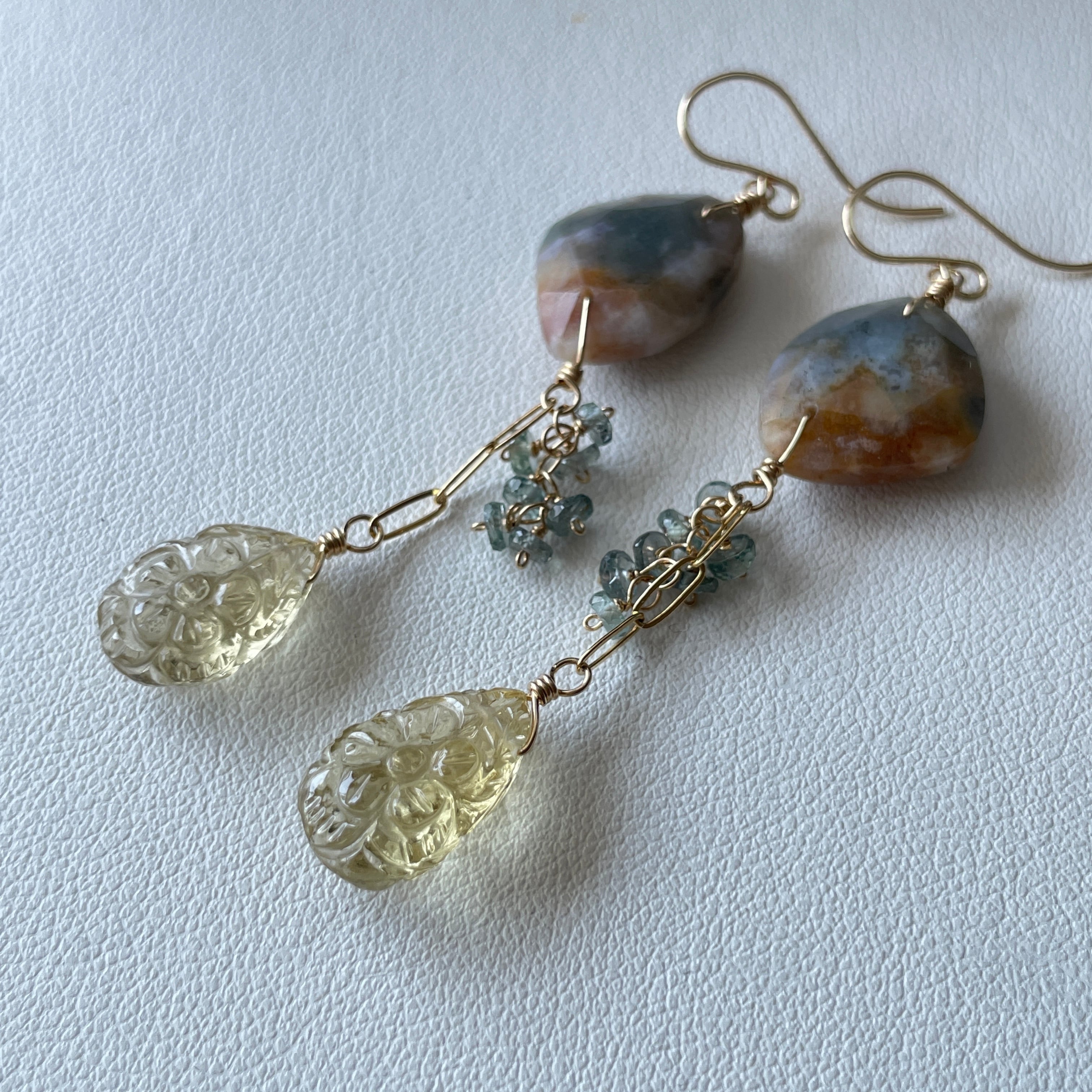 絵画シリーズ・ジャスパー×カービングシトリン ピアス