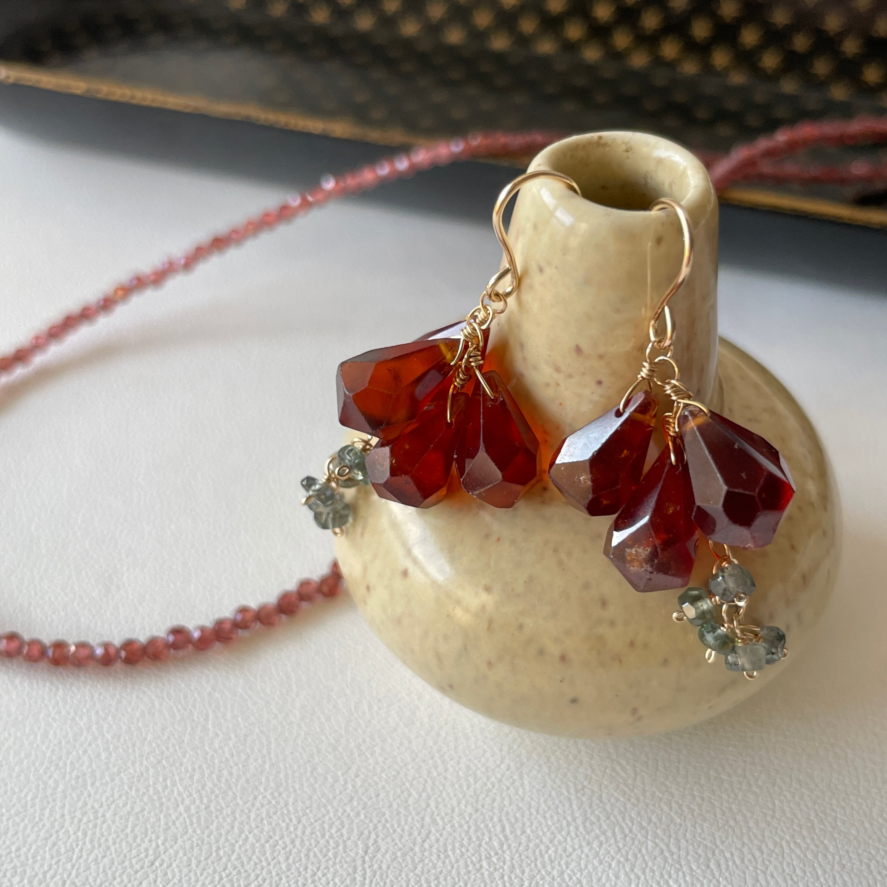 ヘソナイトガーネット×グリーンサファイアピアス
