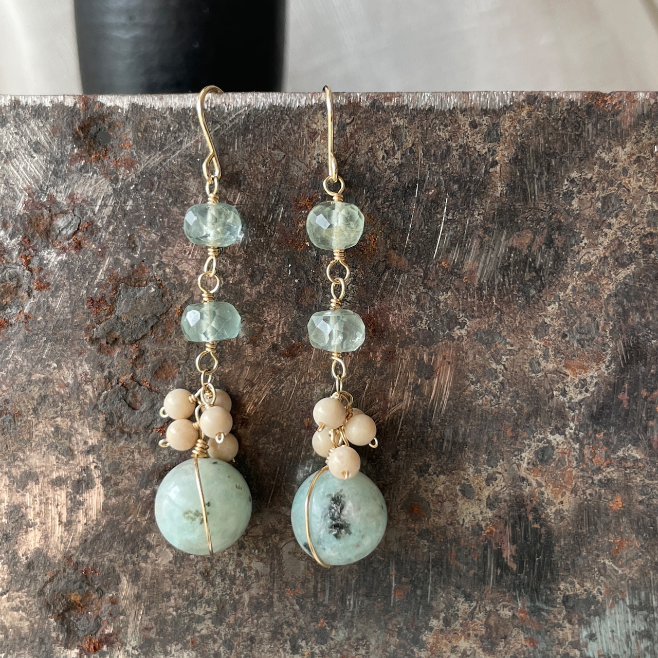 キウイジャスパー×アクアマリン ピアス