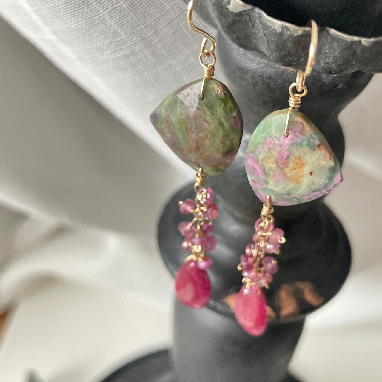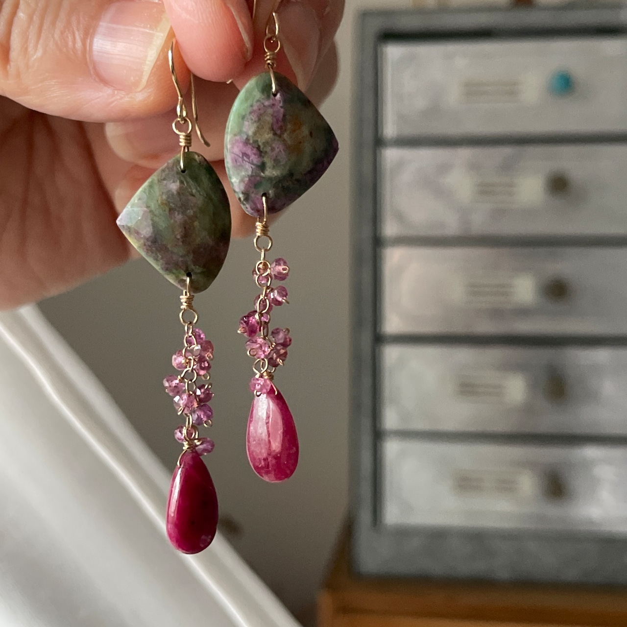モネのジヴェルニーの庭をイメージしてルビーで花を咲かせました。全体的に不透明な石での構成ですがとっても華やかです。