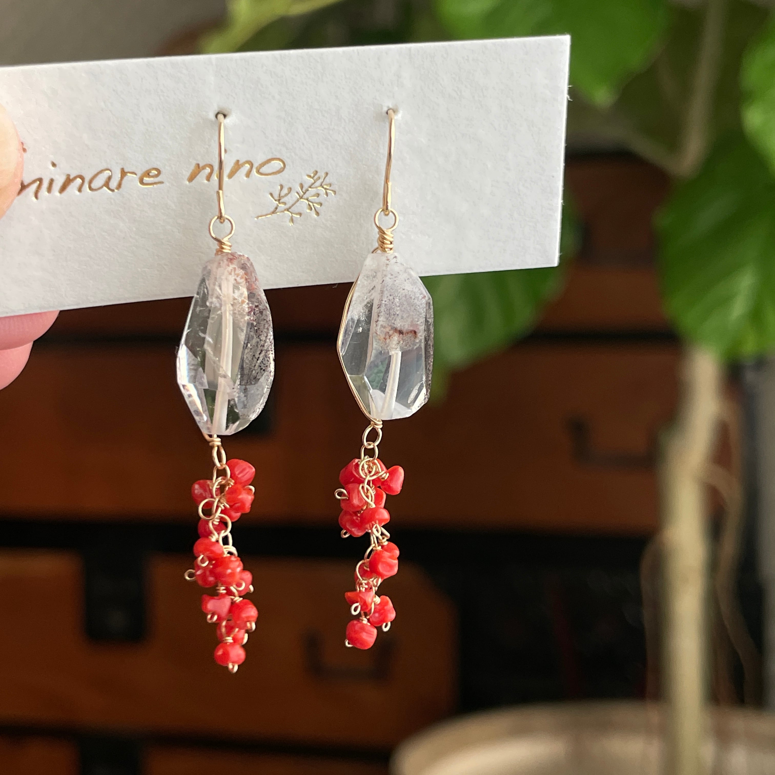 レピドクロサイトイン×珊瑚 ピアス