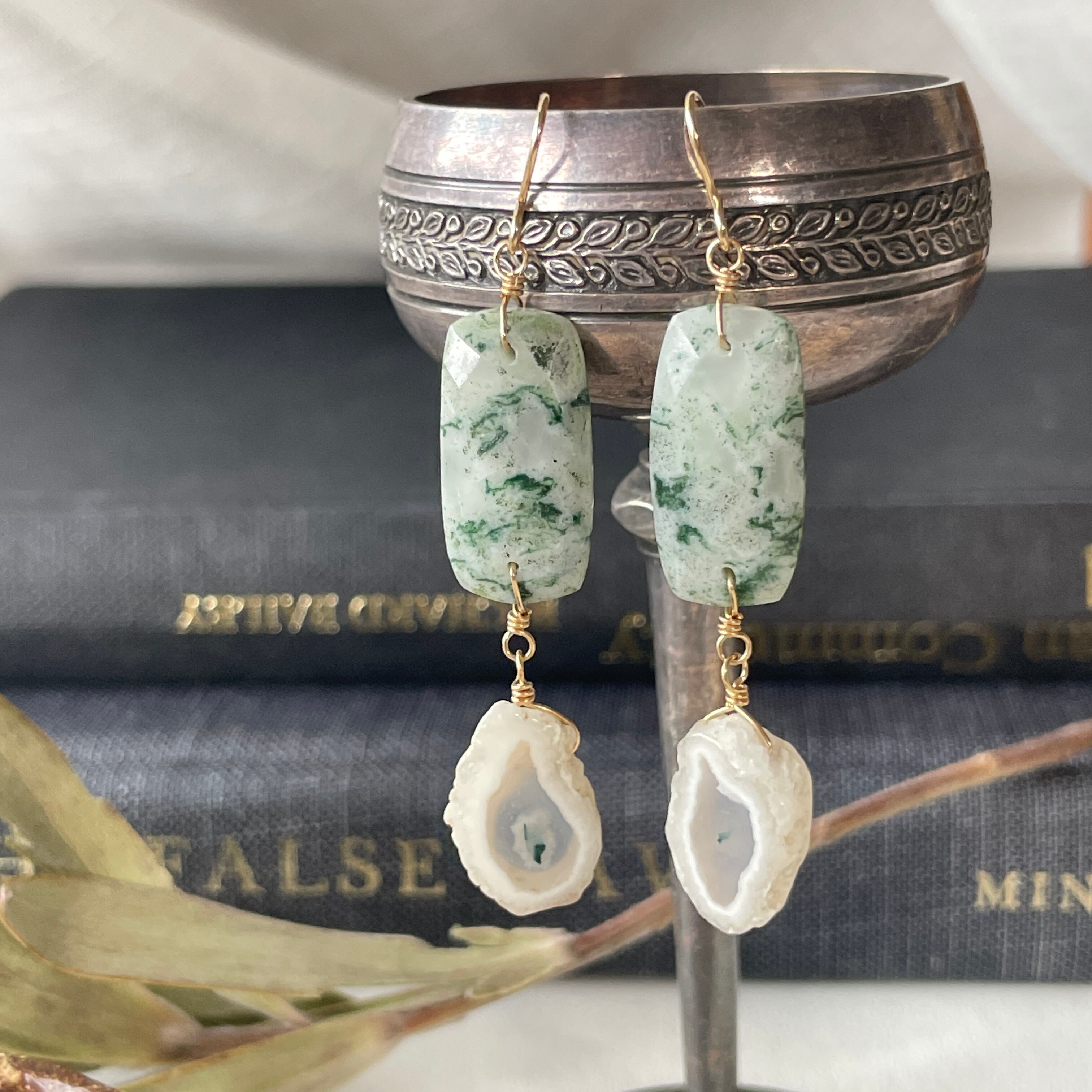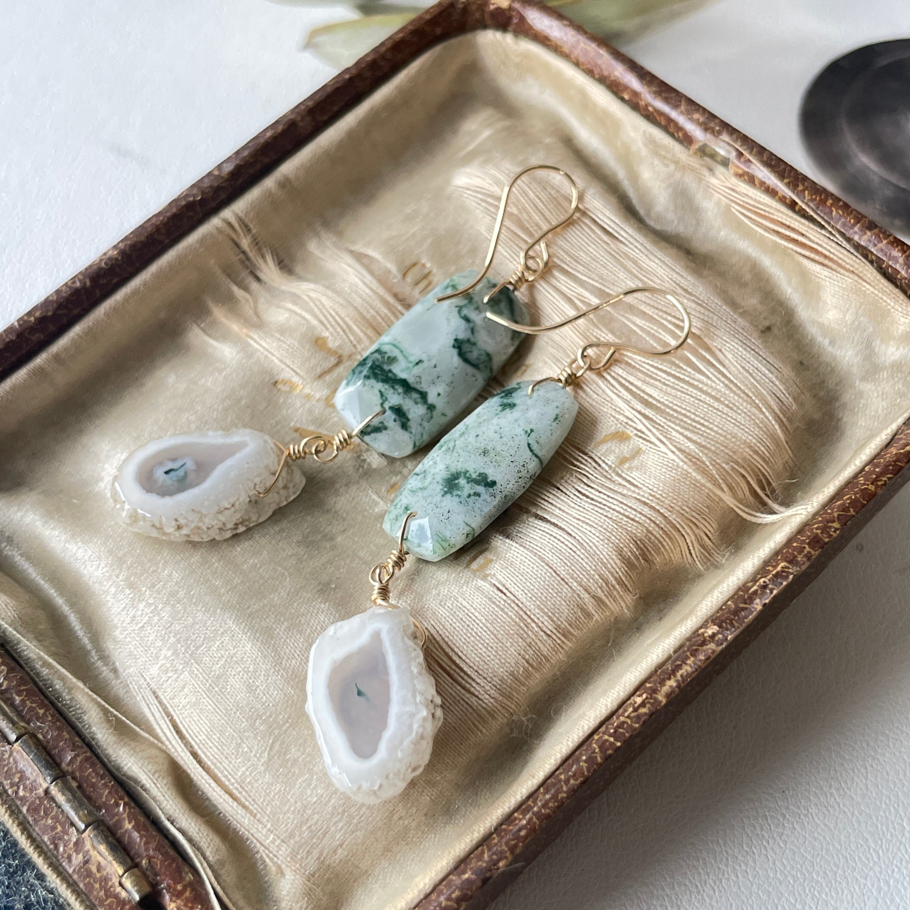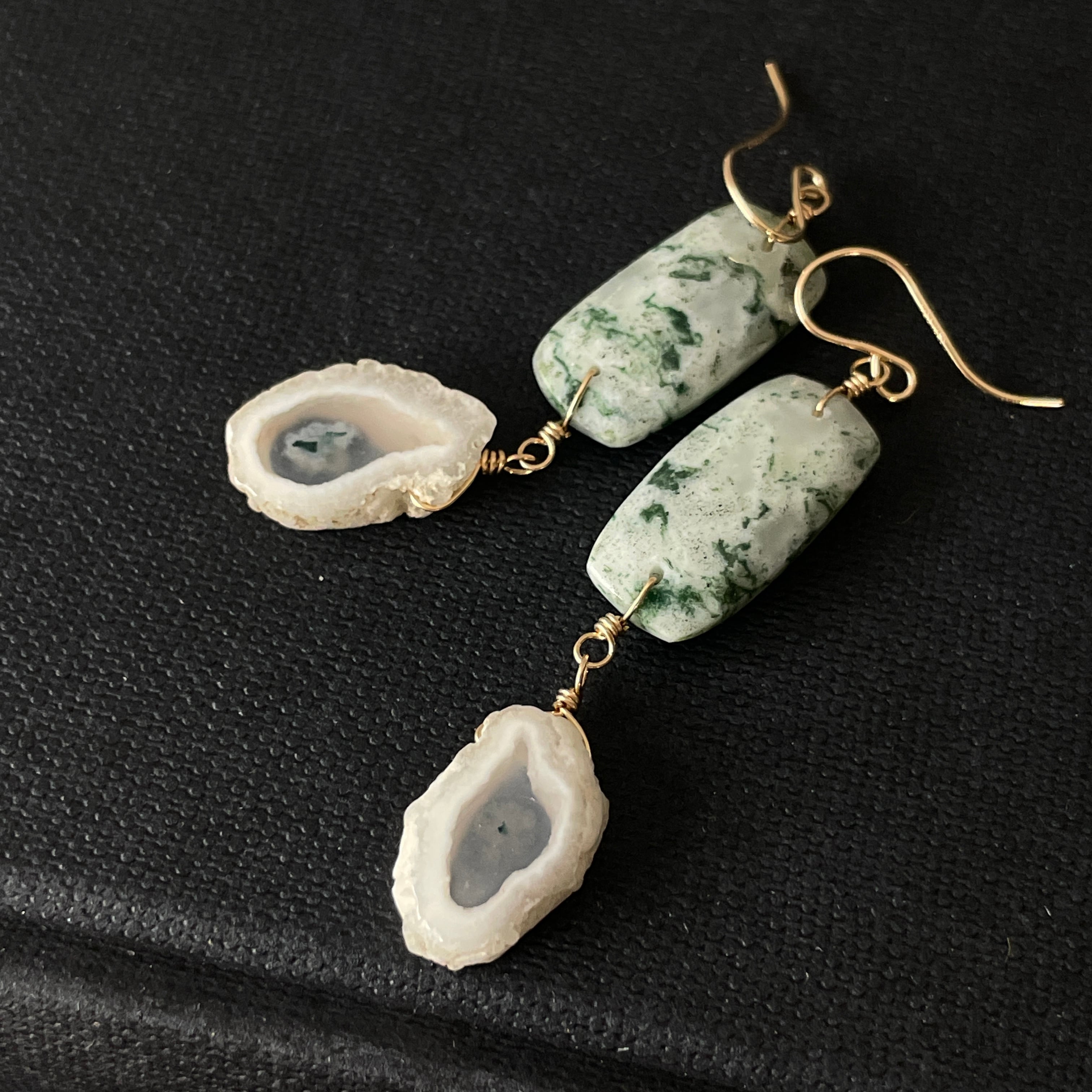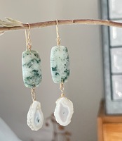 モスホワイトアゲート×スライスアゲート ピアス