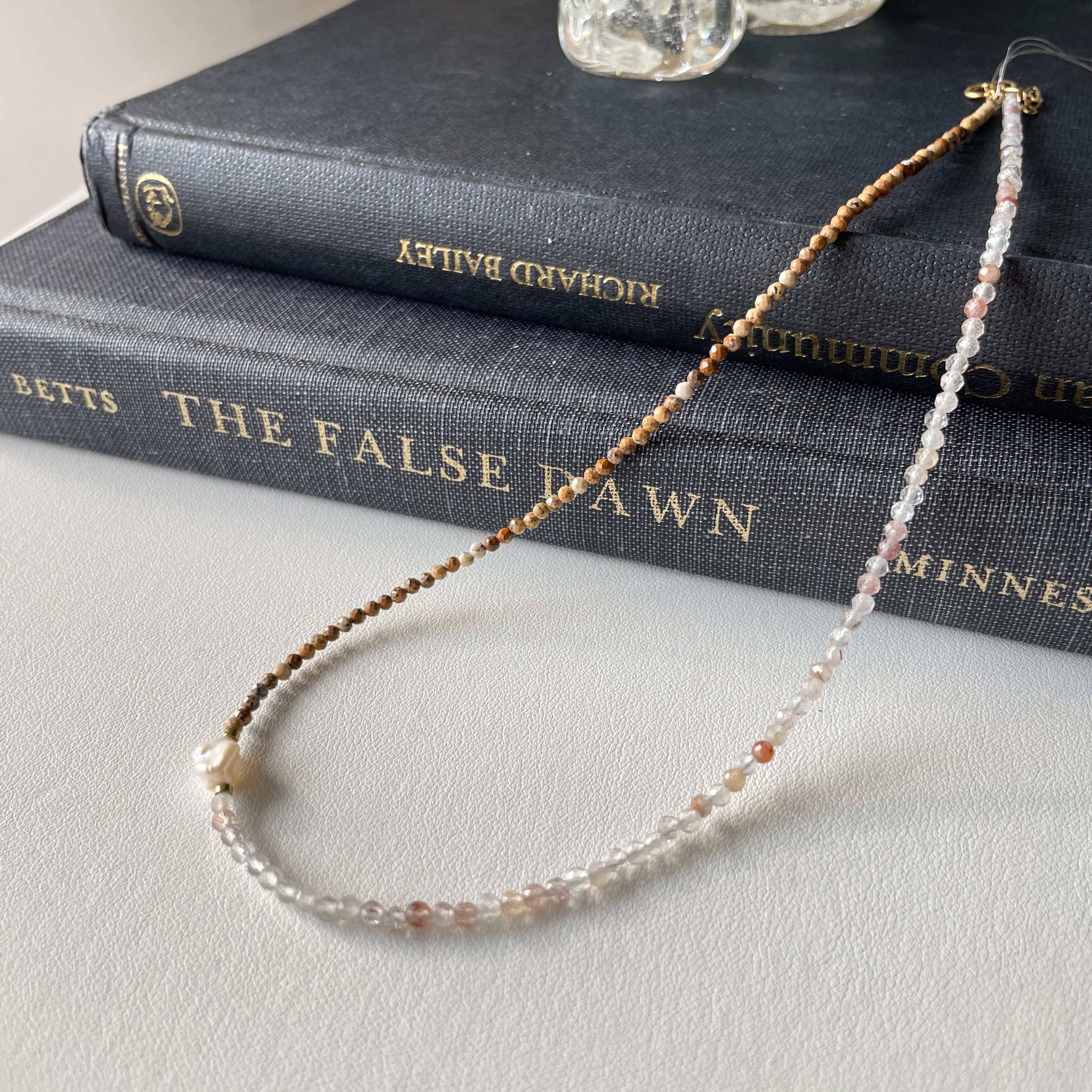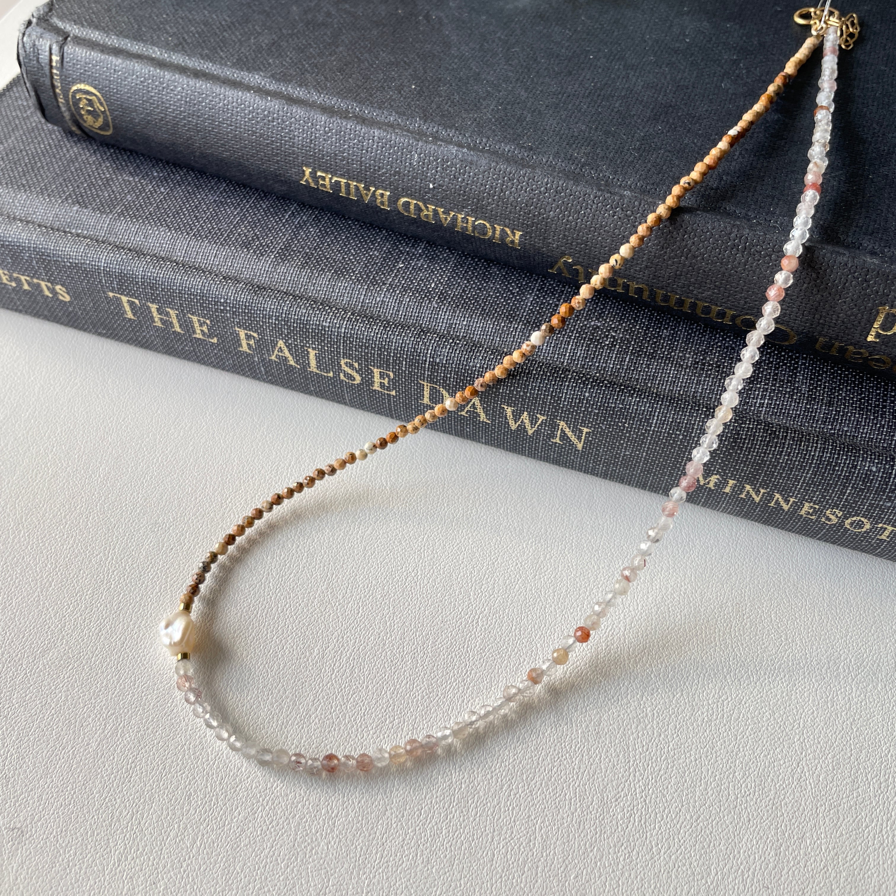 天然石小粒ネックレス パールアクセント