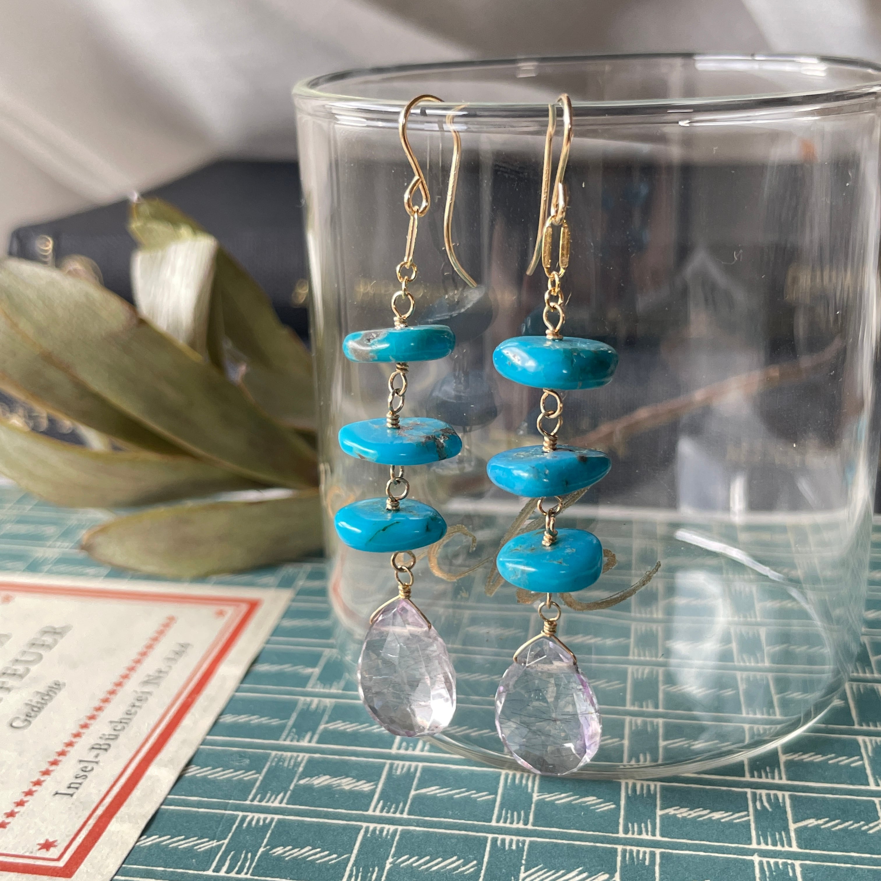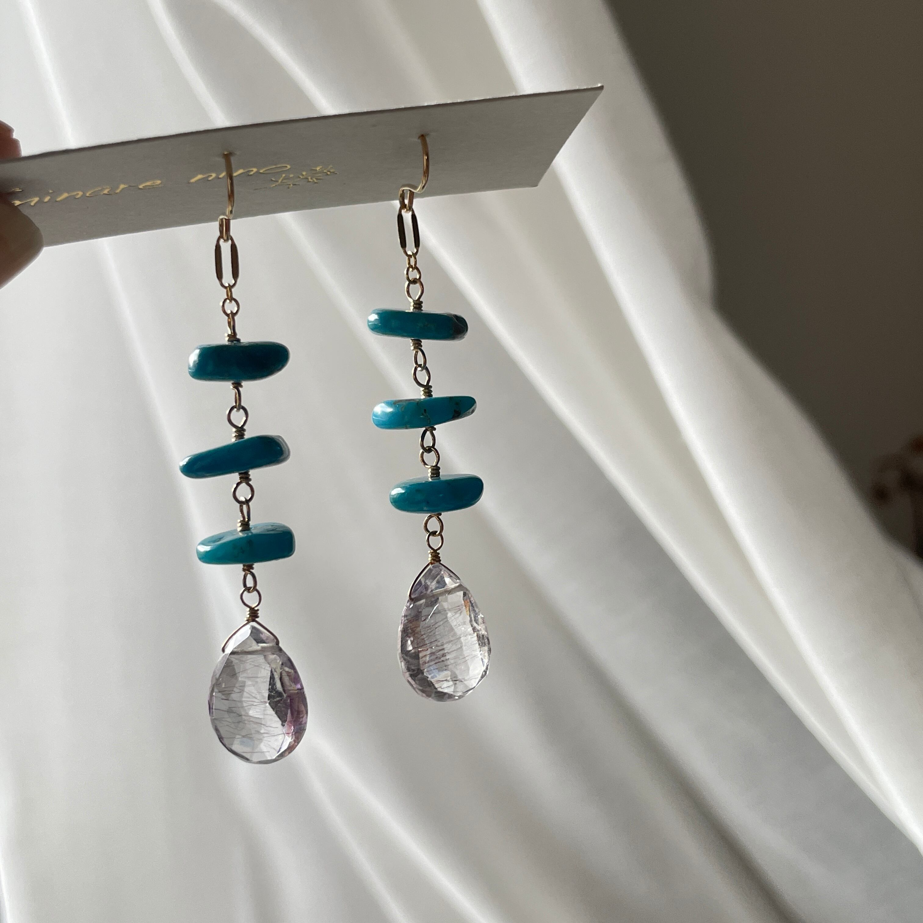 ディスクターコイズ×エレスチャルアメシスト ピアス