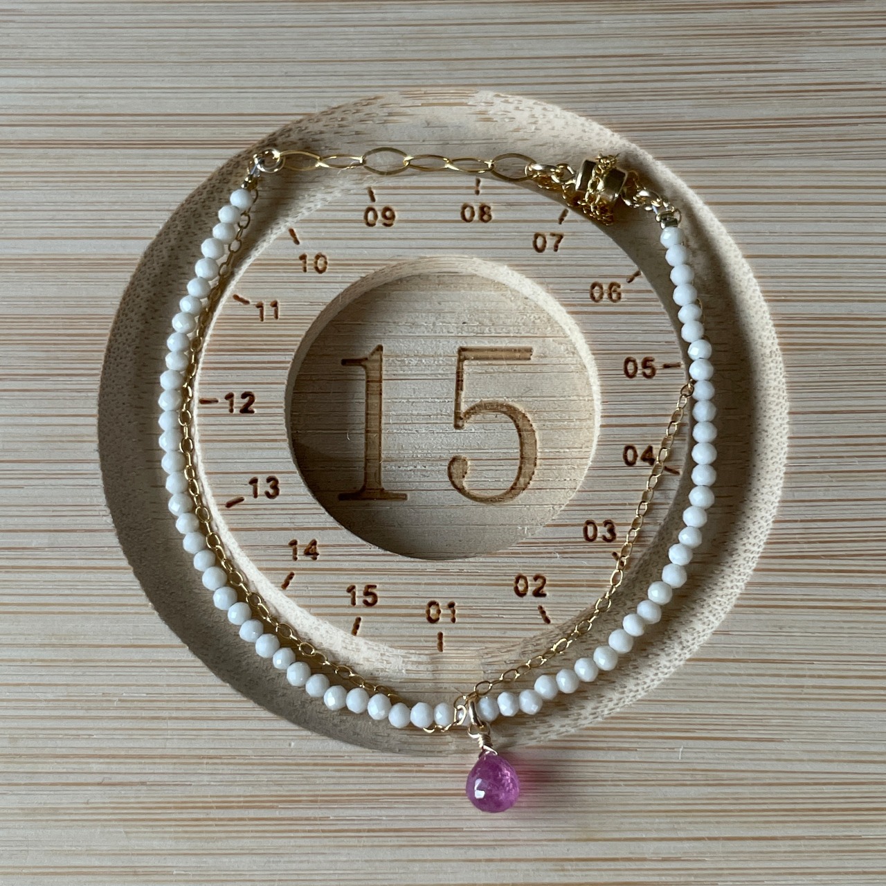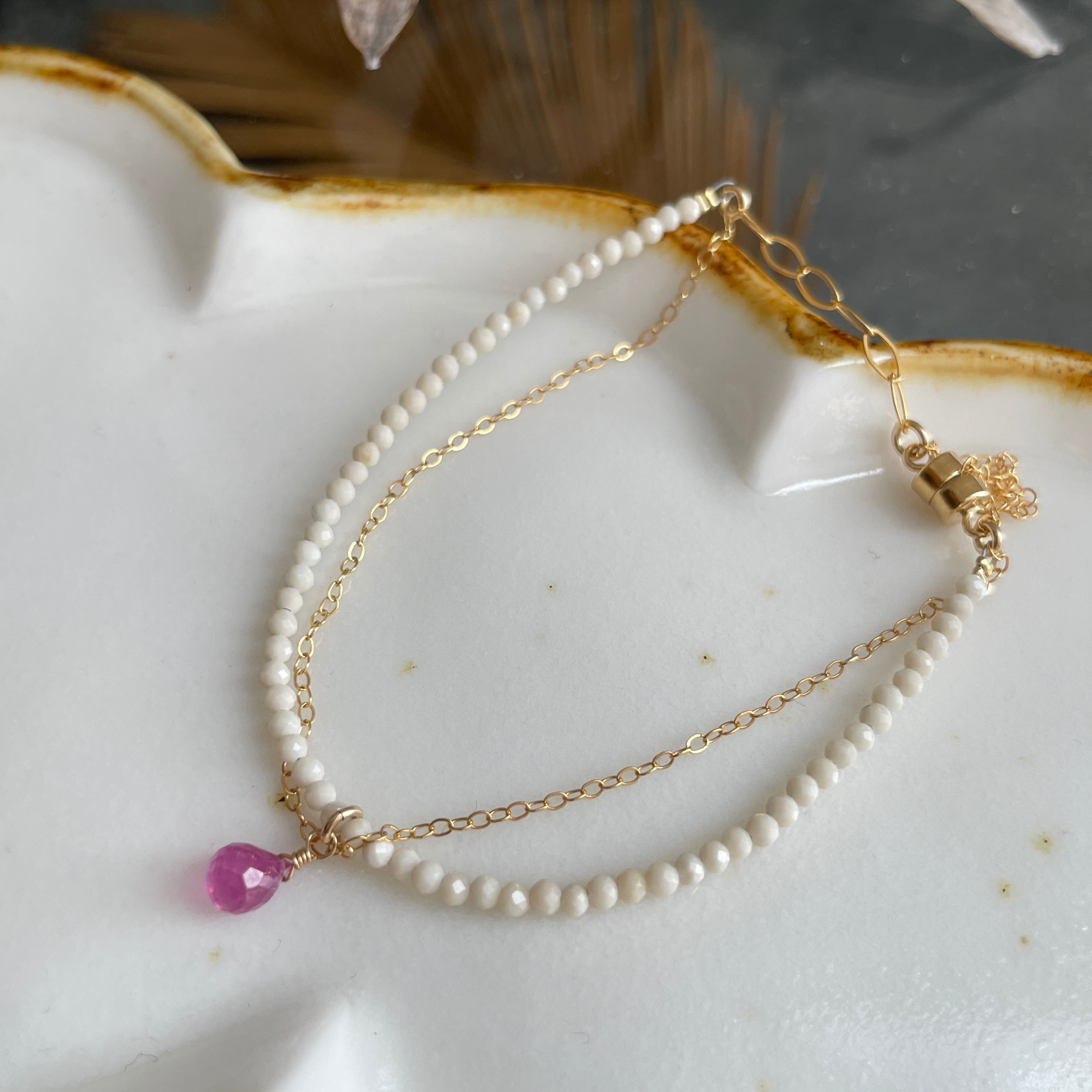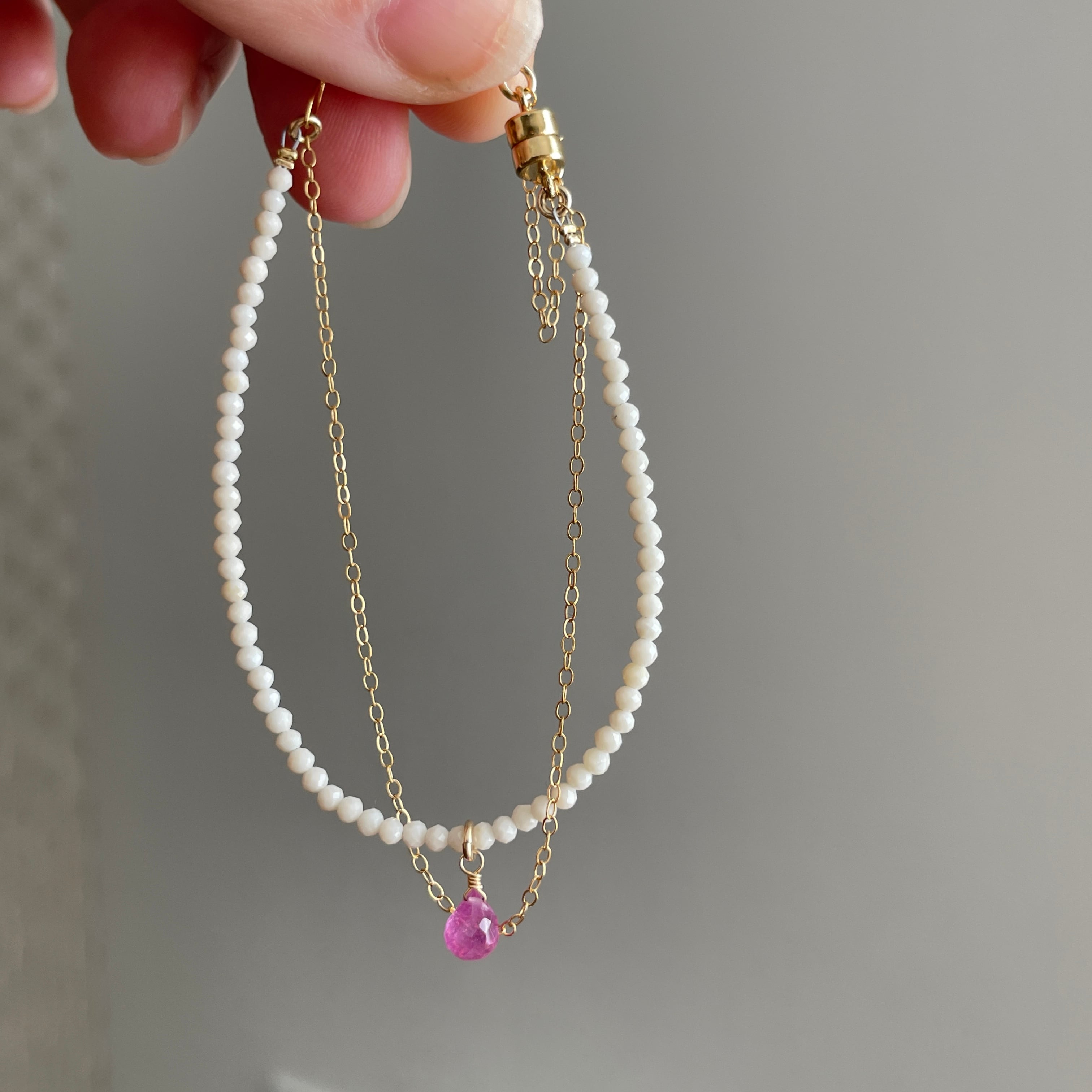 マグネット式2連ブレスレット リバーストーン×ピンクサファイア
