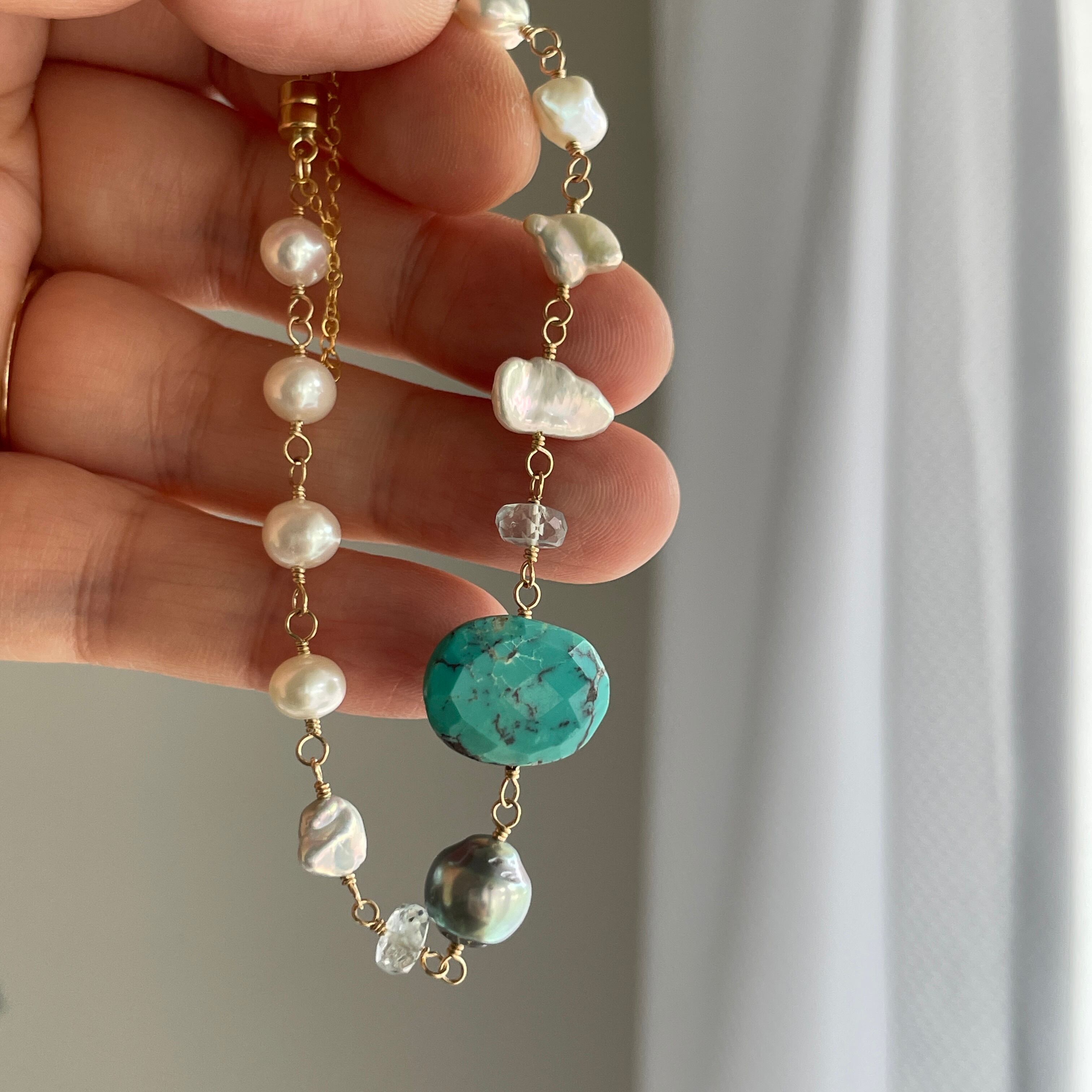 淡水×ターコイズ×南洋真珠 ブレスレット